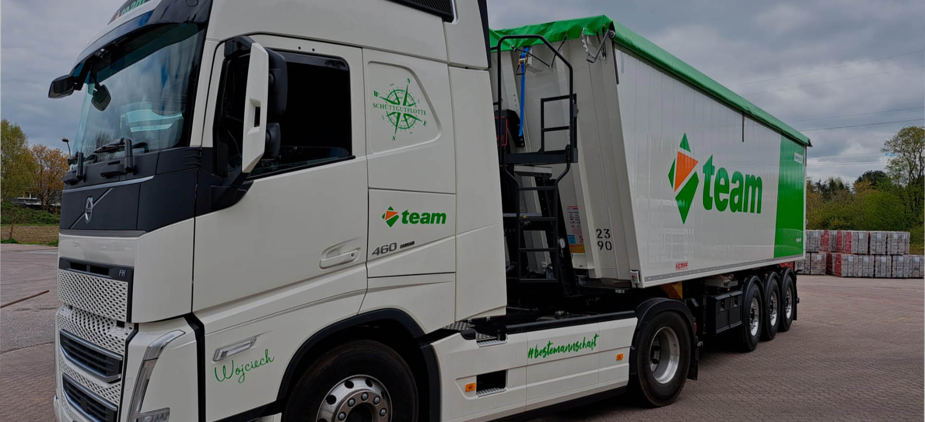 Die team logistik GmbH ist eines der modernsten und fortschrittlichsten Transportunternehmen in Norddeutschland mit ca. 200 eigenen Fahrzeugen, die hauptsächlich im Agrar- und Baustoffsektor eingesetzt werden. Hauptsächlich wird von uns per Kipper, Schubboden oder Gliederzug Getreide, Dünger und Rohware im norddeutschen Raum transportiert. Neben Kran-Lkw besteht die Flotte aus modernen Sattelzugmaschinen mit Kippmulde. Disponiert werden die Fahrzeuge von unseren Standorten in Osterrönfeld, Neubrandenburg und Haldensleben.