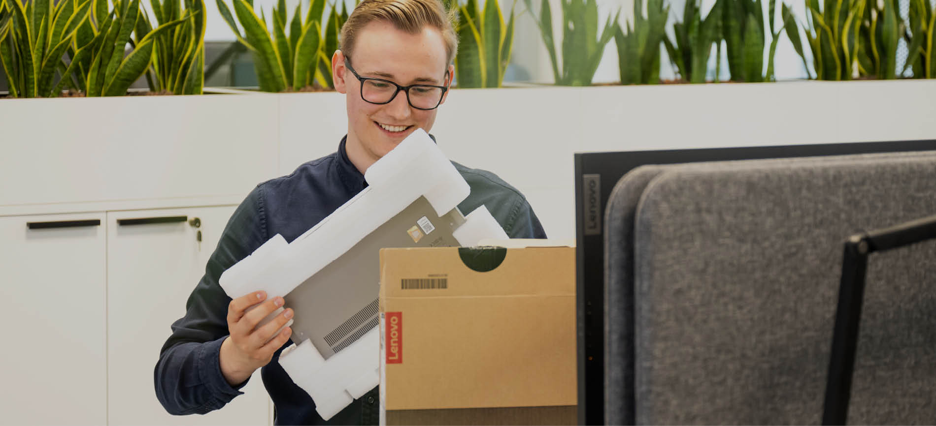 Wir haben offene Büroräume und sitzen in Gruppen zusammen. Jeder Arbeitsplatz ist höhenverstellbar, mit zwei Bildschirmen und einem Headset ausgestattet. Jeder neue Mitarbeitende bekommt zu Beginn einen Laptop ausgehändigt und kann so im ganzen Gebäude ganz flexibel von jedem Arbeitsplatz aus arbeiten.